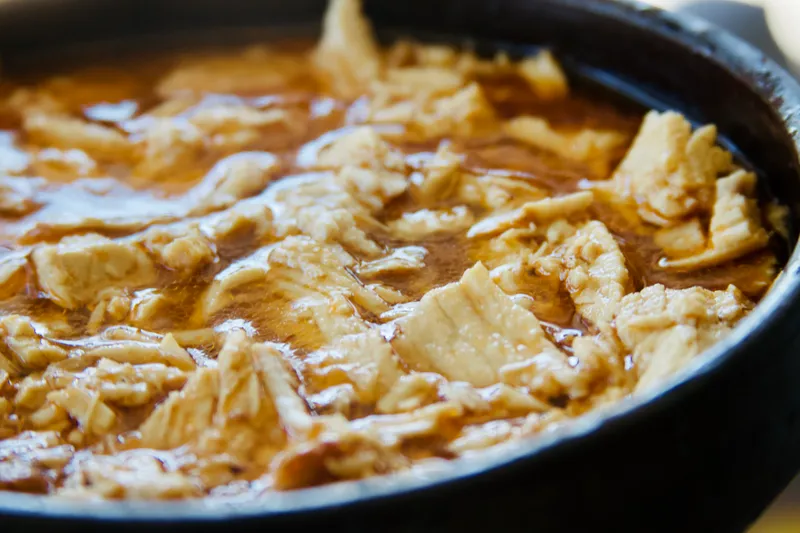 Carne de vacuno deshilachada, cocinada lentamente en vino tinto con un sofrito casero de zanahorias, cebolla y ajo. Finalizada con una suave y cremosa salsa de ciboulette, que le da un toque fresco y delicado. Ideal para servir con arroz, puré, pastas o acompañamientos calientes. Una opción reconfortante, sabrosa y perfecta para el plato principal. Cunde 6 a 8 platos.