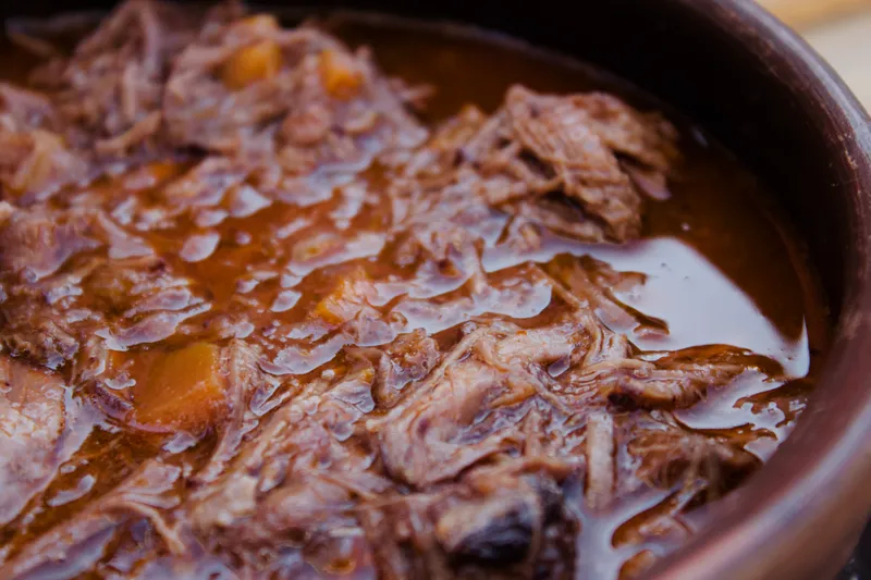 Carne de vacuno deshilachada, cocinada lentamente en vino tinto, con un sofrito casero de zanahorias, cebolla y ajo. Todo coronado con una salsa de tomate hecha en casa, sabrosa y reconfortante. Perfecta para acompañar con arroz, papas, pan o como más te guste. Sabor casero, abundante y listo para disfrutar. 1 kilo cunde de 10 a 15 sandwiches!